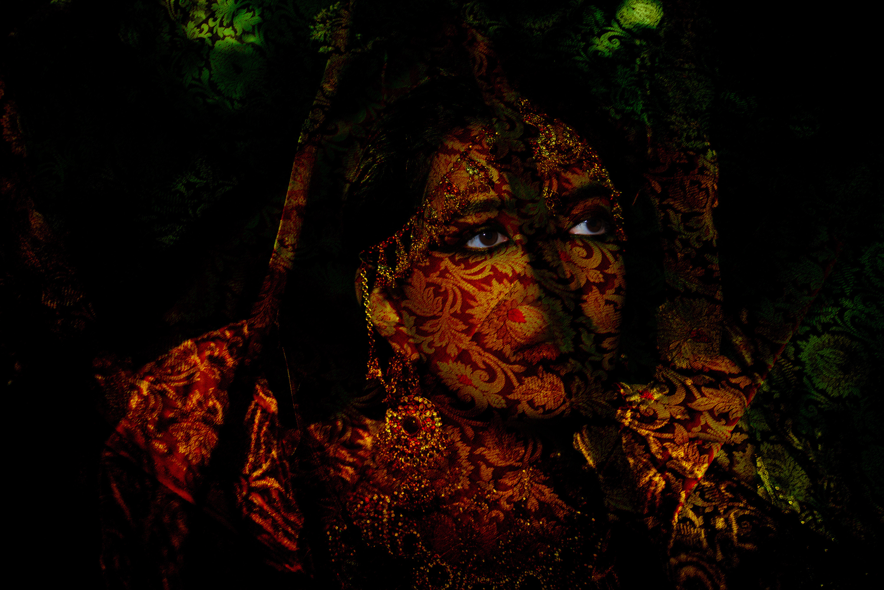 Beneath the Ivory is Molten Brown from Scottish Pakistani interdisciplinary artist Aqsa Arif combines moving image installation and textile photo prints, crafting a narrative of the Lakshmi/Yakshi/Nymph, oscillating between South Asian ancestral memory and western assimilation.