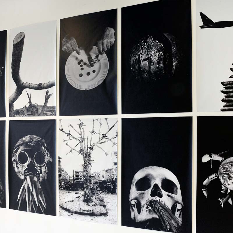 CODE RED is a print installation by artist Peter Kennard for Street Level Photoworks, presented at Gallery 103 to coincide with the 2021 UN Climate Change Conference in Glasgow.