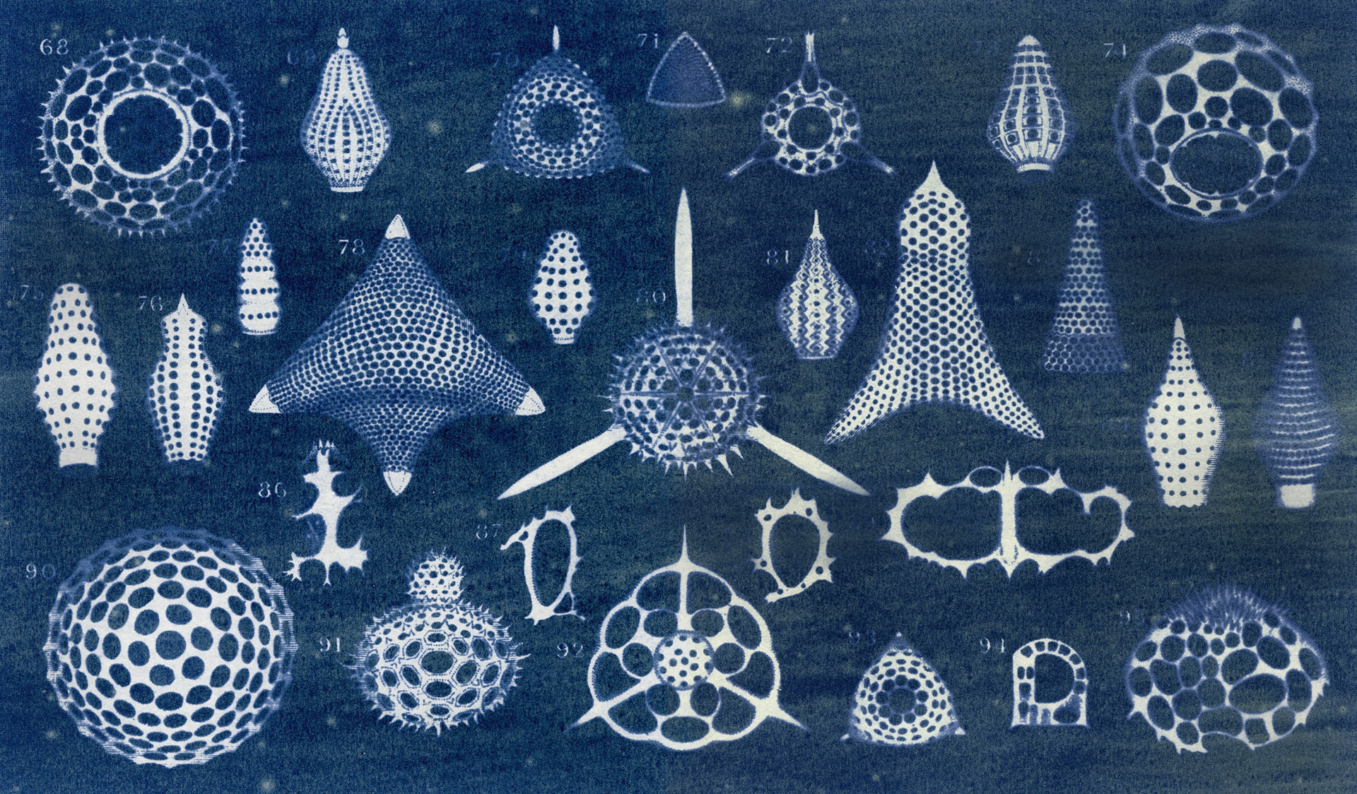 Banner Image: Spikes of PolycystrinaPlate G from The Beginning: its when and its why (by Mungo Ponton) Gum print of an enlargement of an engraving of a drawing by Mungo Ponton, Roger Farnham and Harry Magee