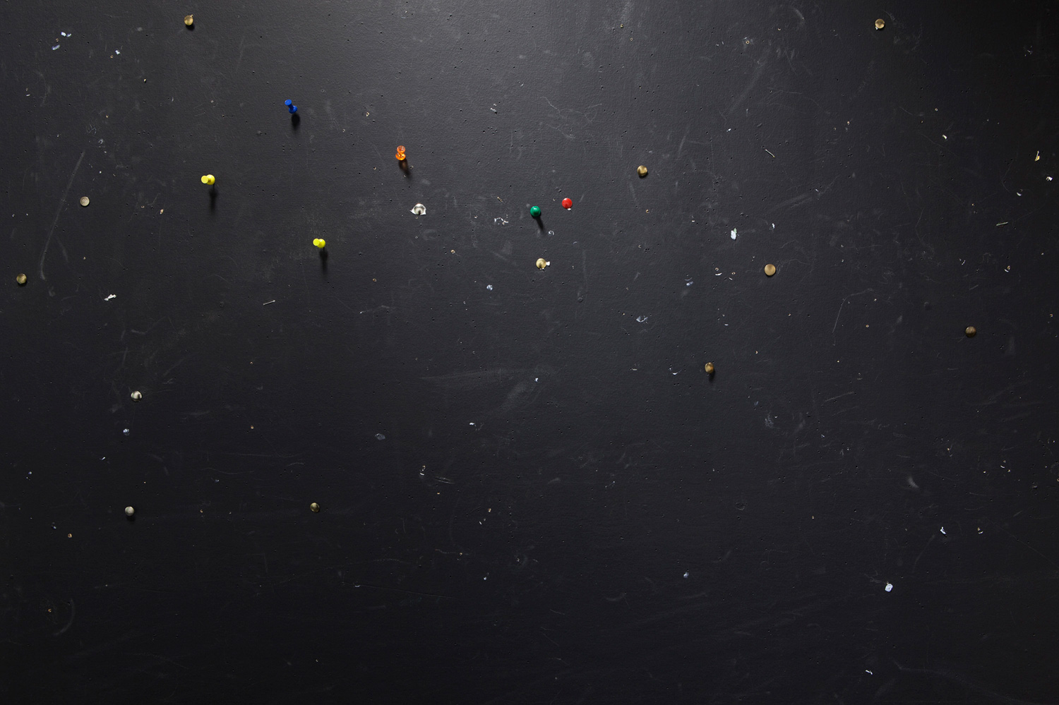 Julia Bauer's ‘Pinboards’ function as part of a larger project exploring ‘corridors’, starting with the functionality of institutional spaces that most of us walk in everyday. The premise of the work is that beauty and aesthetics can be found in the most boring of places, such as these colorful empty pinboards devoid of the messages that previously populated them. Of this work, she says ‘In order to remember things, I need to leave marks. I need the evidence of tangible media in front of me to allow me to think and creatively explore ideas about space, spatial contexts, time passing, text, object and human presence.’