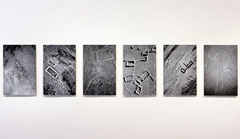 Alan Knox’s work confronts the point when life passes from contingency to finality and documenting the material process he used to mark the death of his grandfather. Making large black and white negatives from his family archive, he backlit them to the moon, then photographed them at each stage of the lunar cycle. Kotryna Ula Kiliulyte’s project seeks also for something she knows she won’t find: home, a ‘fictional room,’ as she states, ‘that glows warmly, promising the feeling of belonging, of truth, of unity.’ Frank McElhinney deals with the accretions of history embodied in landscapes in a series of works exploring forced migration of Scots for their crofting roots. The land recurs again in Stephen Healy’s series of square black and white prints of close ups of tree roots made strange by their intimate detail. Julia Bauer’s series of pinboards on the other hand explore institutional spaces - focused on the tiny marks accumulated on the boards over time, her prints become ‘small relief sculptures,’ as she puts it, or ‘galaxies,’ a natural analogy between micro and macro for an artist who, as a jeweller, works instinctively with touch and trace.
